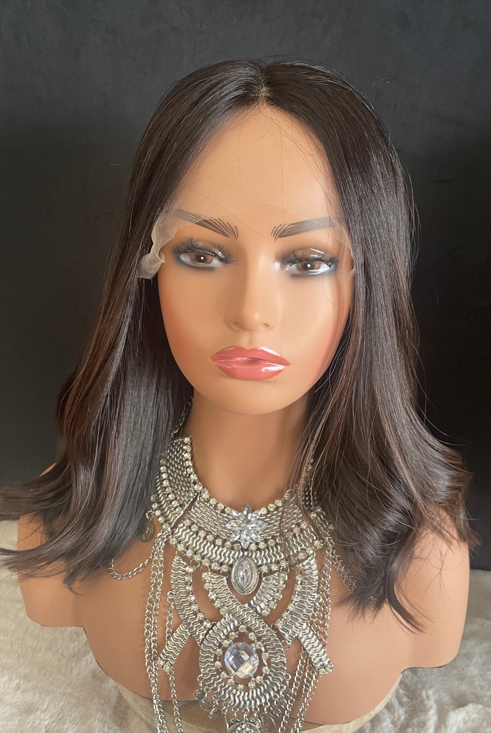 LACE-TOP WIG - Dark Brown with Subtle Highlights - 100% Luxury European Hair